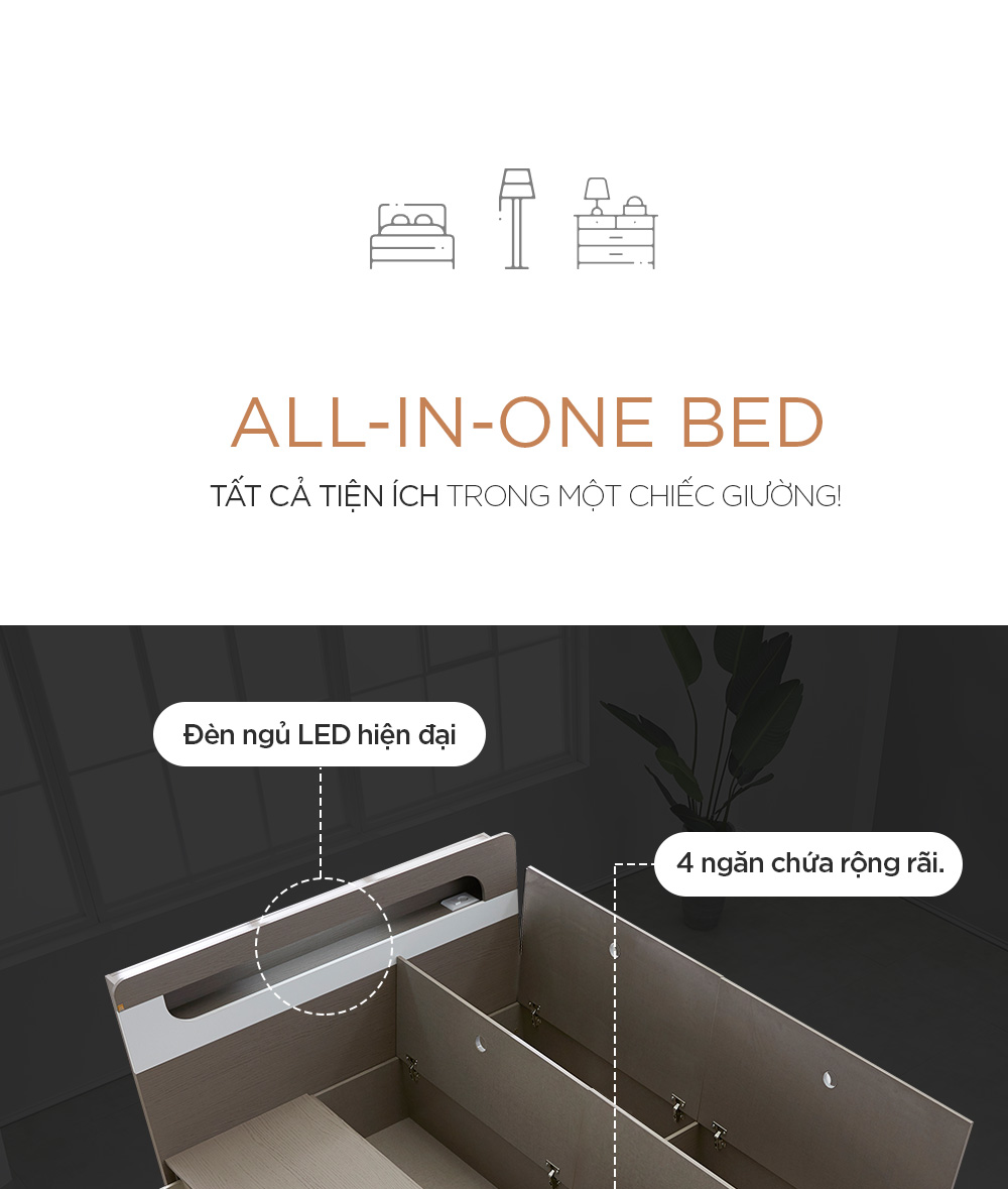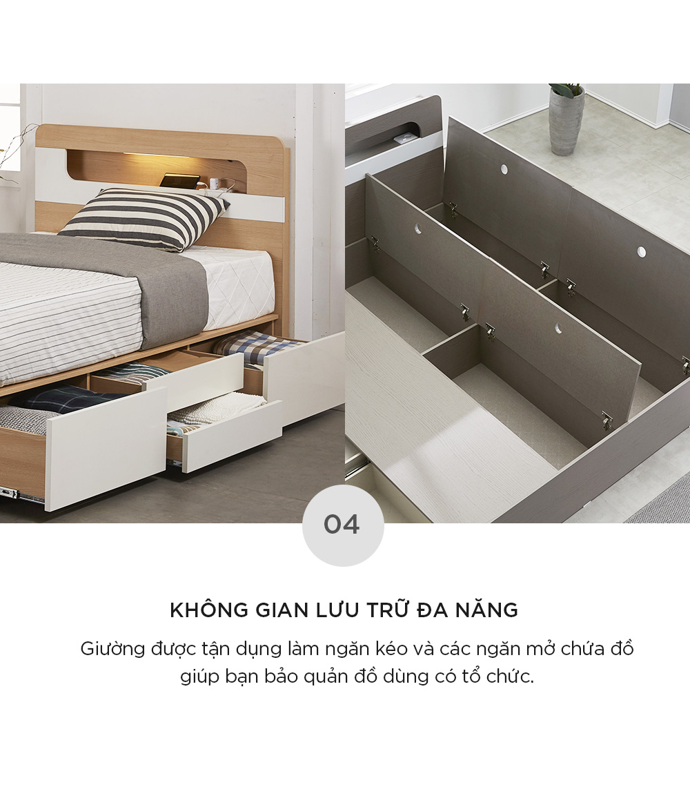 DB027 - GIƯỜNG NGỦ ĐÈN LED CÓ NGĂN KÉO MAY