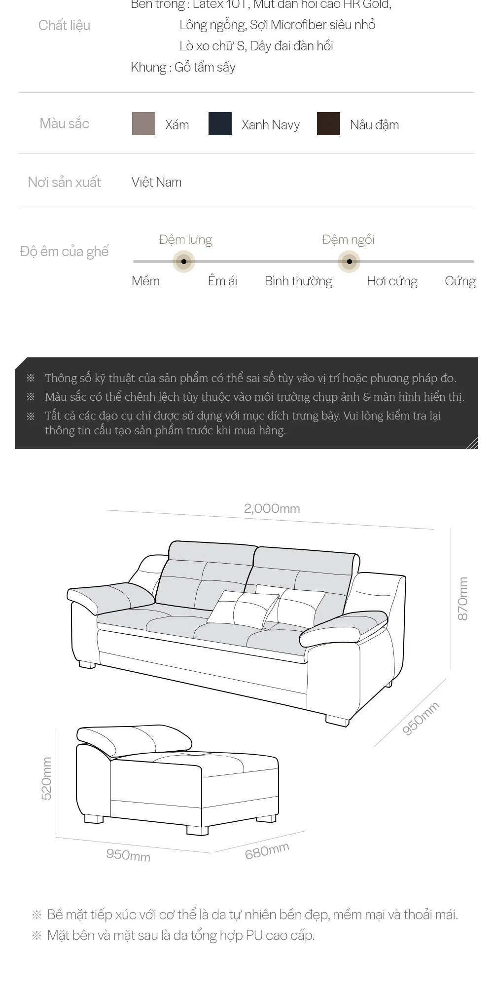 SF302A - GHẾ SOFA DA 3 CHỖ NGỒI